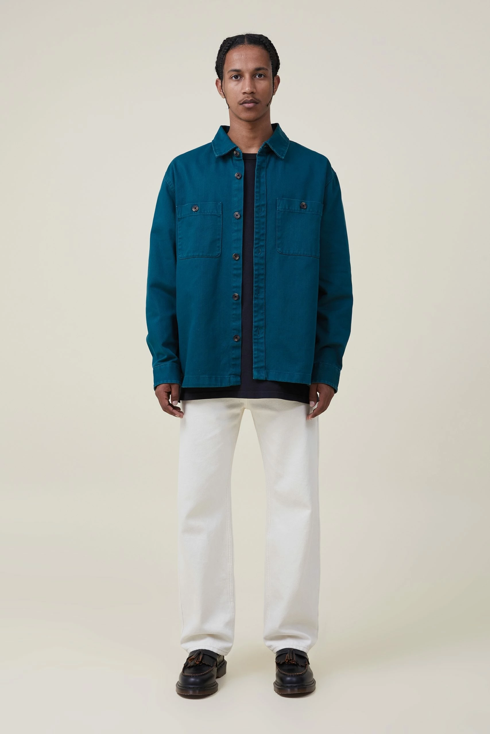 Master the art of Urban utility with the heavy over shirt in rugged corduroy. The ultimate shirt/jacket hybrid, this button down shirt will quickly become the backbone of your streetwear roster
